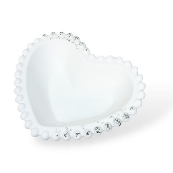 Kaunis iso palloreunainen sydänkulho esimerkiksi korujen tai muiden pienten esineiden säilytykseen. Voit valaa muottiin erilaisilla massoilla, kuten vaikkapa Jesmonitella, EKO hartsilla tai epoksihartsilla. Valmiin astian korkeus 5,4cm ja halkaisija 16,2cm.