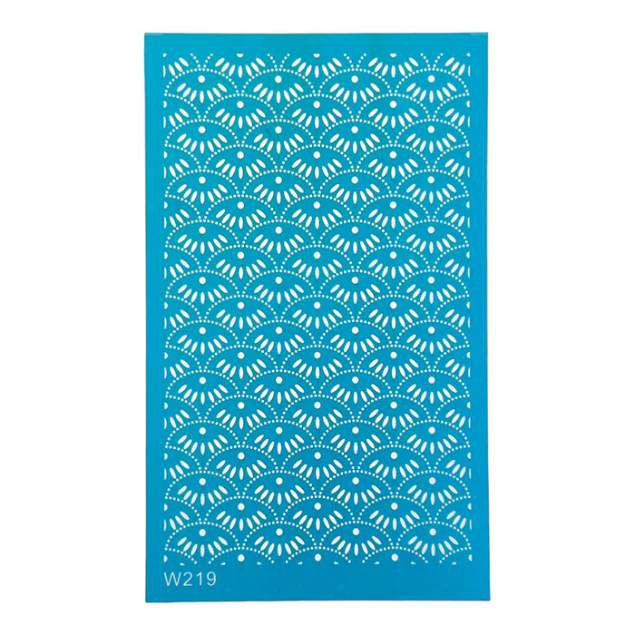 Upea 9x15cm kokoinen silkkisabluuna esimerkiksi massakorujen pintojen koristeluun.