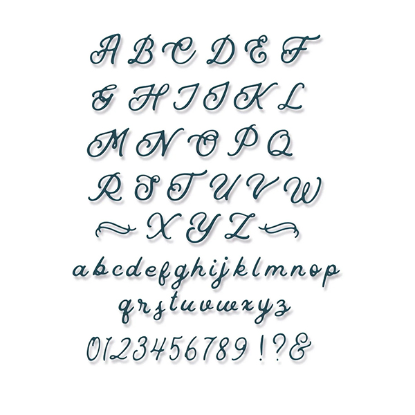 Sizzix Thinlits stanssi, jolla teet kauniita kaunokirjaimia ja numeroita. Stanssin koko noin 11×15,5cm. Isojen kirjainten korkeus noin 1,7cm. Stanssi sopii eri kuvioleikkureihin.