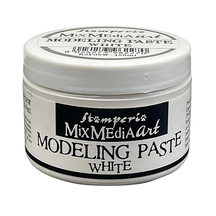 Stamperian Modeling Pasta on kevyttä valkoista pastaa mixed mediaan ja esimerkiksi akryylimaalauksiin tekstuuriksi. Pasta on kevyttä ja mehmeää ja sitä on helppo levittää esimerkiksi palettiveitsen avulla. Ihanteellinen myös sabluunoiden kanssa käytettäväksi. Työvälineet kannattaa pestä vedellä heti käytön jälkeen. Kuivumisen jälkeen päälle voi maalata esimerkiksi akryylimaaleilla. Purkkikoko 150ml.