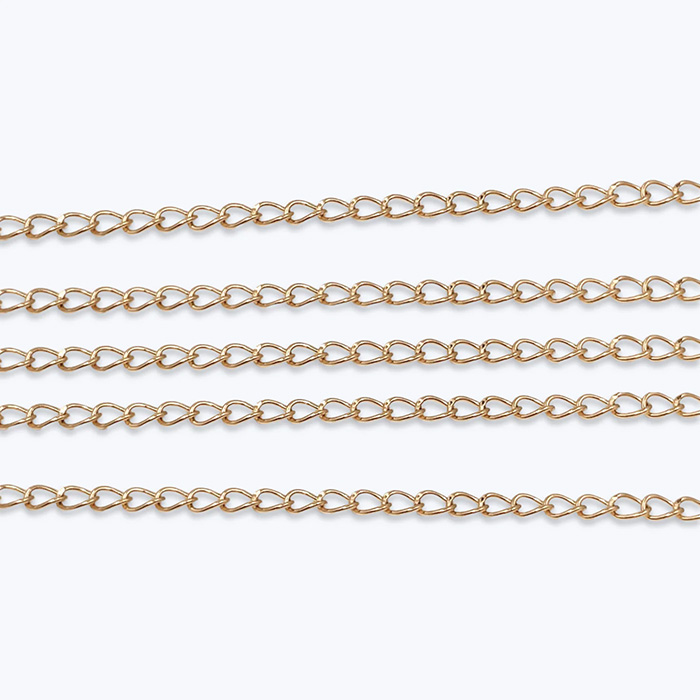 Laadukas ja kestävä kirurginteräksestä valmistettu ketju koruaskarteluun, kuten esimerkiksi kaulakoruihin ja korvakoruihin. Ketjun lenkit on juotettu kiinni, joten ne eivät aukea ja ketju on erittäin kestävää. Ketjun lenkeistä mahtuu hyvin 1mm vahvuinen välirengas. Ketjun materiaali on ruostumaton teräs ja kultaus on tehty teräksen pintaan PVD-menetelmällä, joka antaa osille huomattavasti kestävämmän kultauksen kuin tavanomainen kultaus.