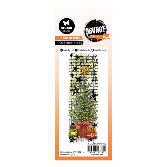 Studio Lightin kirkas jouluaiheinen leimasin, jonka koko noin 5x14cm. Leimasin asetetaan akryylipalaan leimatessa.