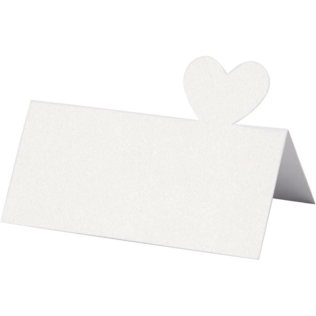 Kaksiosainen helmiäispaikkakortti, jossa sydän. Koko 85×80 mm.
