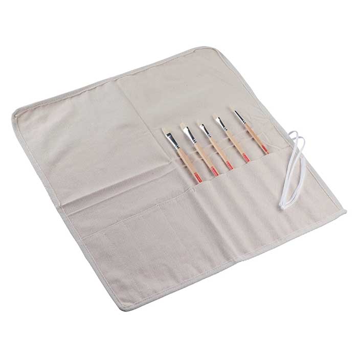 Kätevä kankainen kotelo siveltimien säilyttämiseen. Kotelo on vahvaa kangasta ja siinä on tasku 18 siveltimelle. Kotelon koko on 40x47cm ja siinä on kaksi pitkää sulkunauhaa. Siveltimet eivät sisälly pakkaukseen.