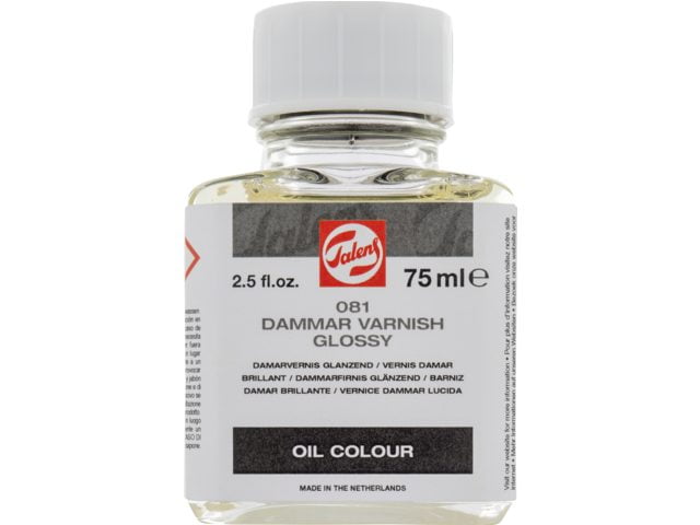 Dammarvernissa on perinteinen loppuvernissa. Se antaa työlle kiiltoa, sekä suojaa sitä. Vernissaa voi ohentaa tärpärillä.