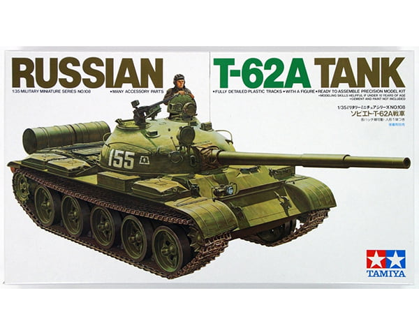 Tamiya koottava pienoismalli ’Russian Tank T-62A’ venäläisestä panssarivaunusta.