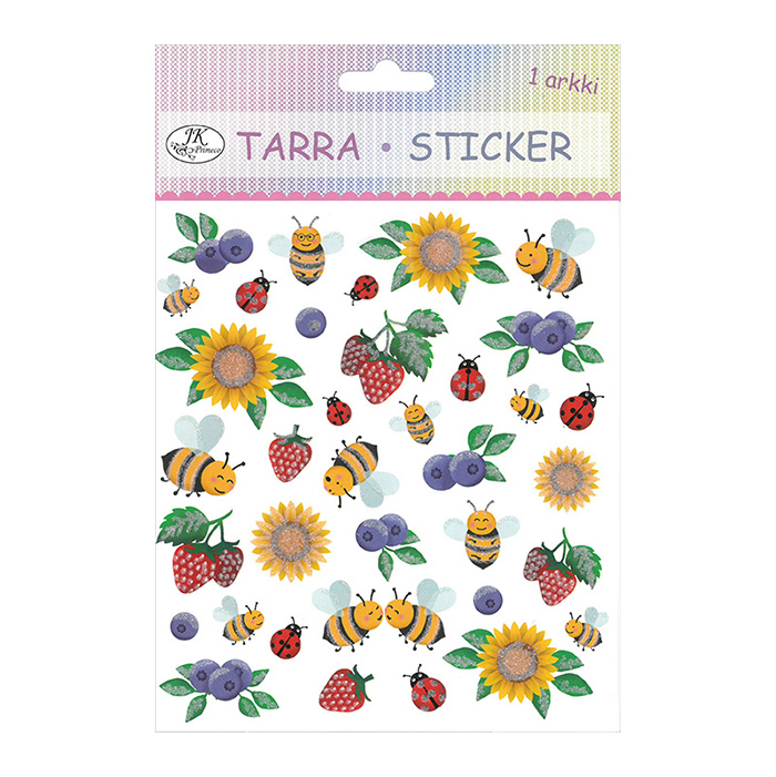 Hauskat kesäiset tarrat lapsille, korttiaskarteluun ja muuhun koristeluun. Arkin koko noin 15cm x 17cm. Pakkaus sisältää yhden arkin.