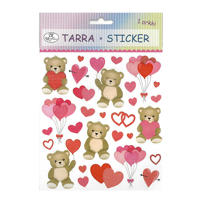 Tarra-arkki lapsille, korttiaskarteluun ja muuhun koristeluun. Tarra-arkin koko on noin 17cm x 15cm. Pakkauksessa on 1 arkki.