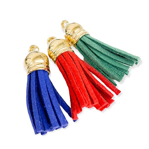 Ihanat värikkäät tasselit esimerkiksi avaimenperiin! Lajitelma sisältää 3kpl eri värisiä tasseleita. Tasselin kokonaispituus 3,5cm, reiän halkaisija n. 3mm.