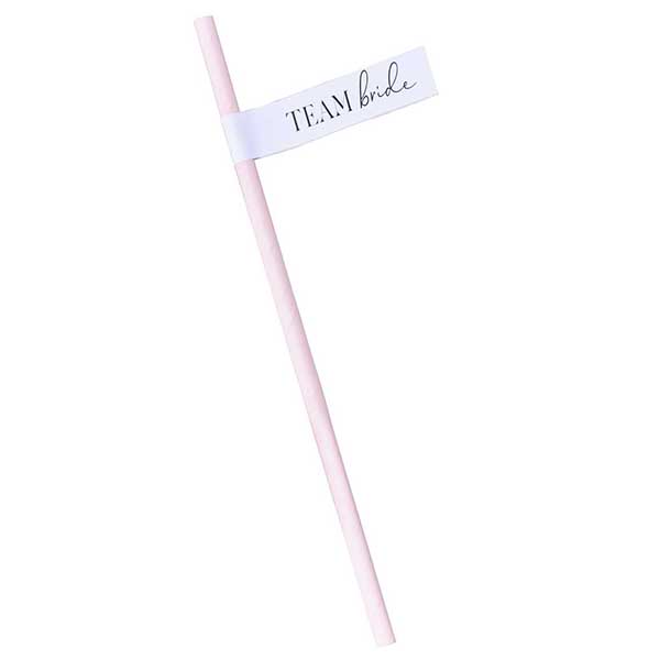 Vaaleanpunaiset Team Bride paperipillit polttareihin. Pakkauksessa 16 kpl.