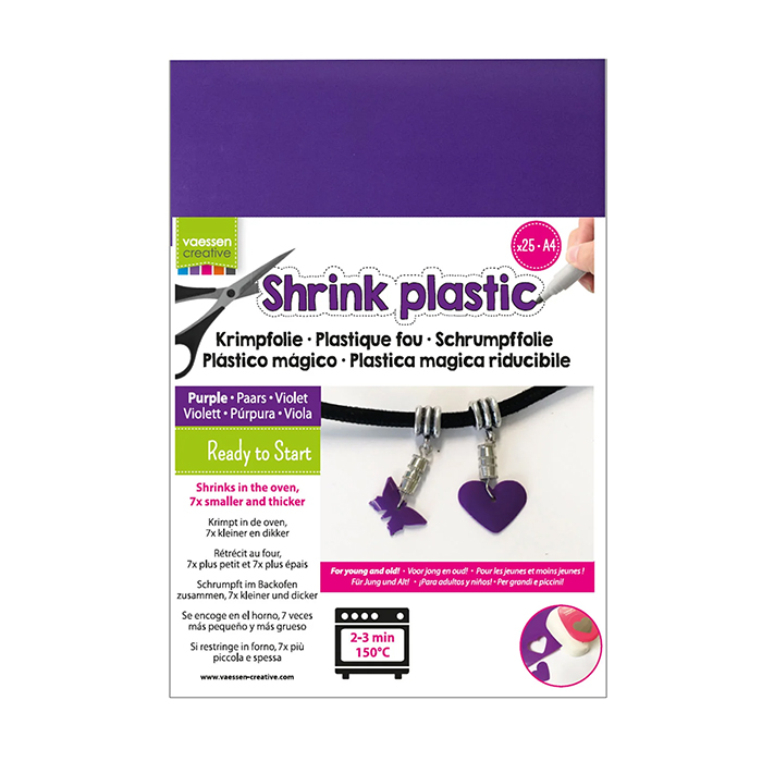 Kutistemuovilla voit tehdä esimerkiksi avaimenperiä, koruja ja magneetteja. Piirrä muoville haluamasi kuva, leikkaa irti ja paista kotiuunissa, joilloin muovi kutistuu jopa 7 kertaa pienemmäksi alkuperäisestä koosta. Voit kutistaa muovin myös askartelukäyttöön tarkoitetulla kuumailmapuhaltimella. Arkit ovat kiiltäväpintaisia ja niille käy permanent tussit. Arkin koko on A4 eli noin  21x30cm. Myydään kappaleittain.