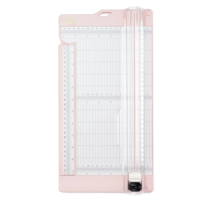 Laadukas ja jämäkkä Vaessen Creative -paperileikkuri, jossa on skräppipaperillekin sopiva 31,5cm leikkuuleveys. Leikkaamisen lisäksi tällä laitteella voit myös tehdä nuuttaukset esim. korttipohjiin. Kokoontaitettavalla jatkoviivaimella on pituutta jopa reilut 43 cm. Työskentelyalustalla on kokoa noin 15,5cm ilman jatkoviivaimen avaamista. Leikkurissa on mitat sekä senttimetreinä että tuumina ja sekä nuuttaus- että leikkuuterä ovat vaihdettavia.