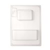 Muovinen muottilevy esim. saippuoiden valamiseen. Levyssä on kaksi  erikokoista suorakaiteen muotoista  muottia. Kuvioiden koot noin 5,5×8,7cm ja 5,5×14,5cm.