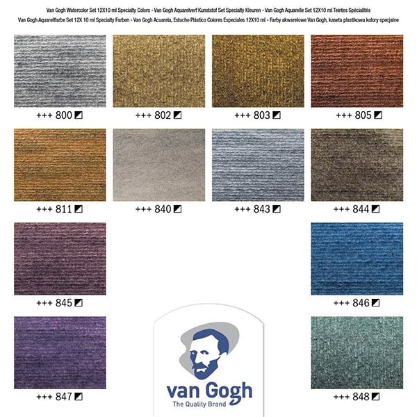 Van Gogh Akvarellituubisetti, metalli- ja interference sävyt 12 kpl