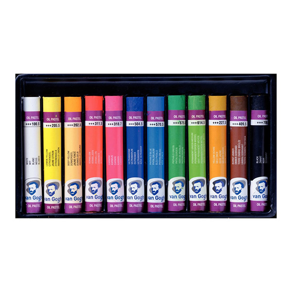 Van Goghin öljypastellit ovat loistavia värejä, jotka on valmistettu puhtaista pigmenteistä, mineraaliöljyistä ja vahasideaineista, mikä takaa erittäin pehmeän ja sileän asettelun ilman pölyä. Upea sävytysvoima ja helppo värinsiirto.