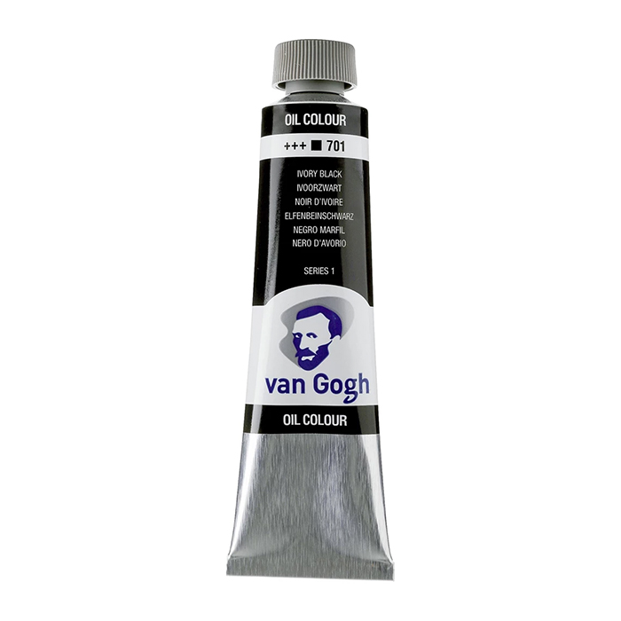 Tämä 40 ml:n tuubi peittävää Ivory Black 701 -väriä on valmistettu PBk9-pigmentillä ja sen valonkestoluokitus on +++ (100+ vuotta museo-olosuhteissa). Sarja 1.