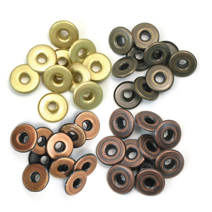 Metalliset reiänvahvikeniitit, joita voi käyttää esimerkiksi kartongille tai kankaalle. Niitti asetetaan valmiiksi tehdyn reiän läpi, jonka jälkeen litistetään tausta esimerkiksi vasaralla tai niittityökalun avulla. Pakkauksessa 4 eri värisiä niittejä, jokaista väriä 10kpl. Niitten halkaisija noin 14mm, aukon halkaisija noin 5mm.
