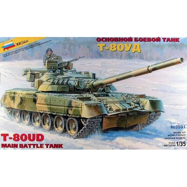 Zvezdan pienoismalli venäläisestä T-80UD panssarivaunusta.